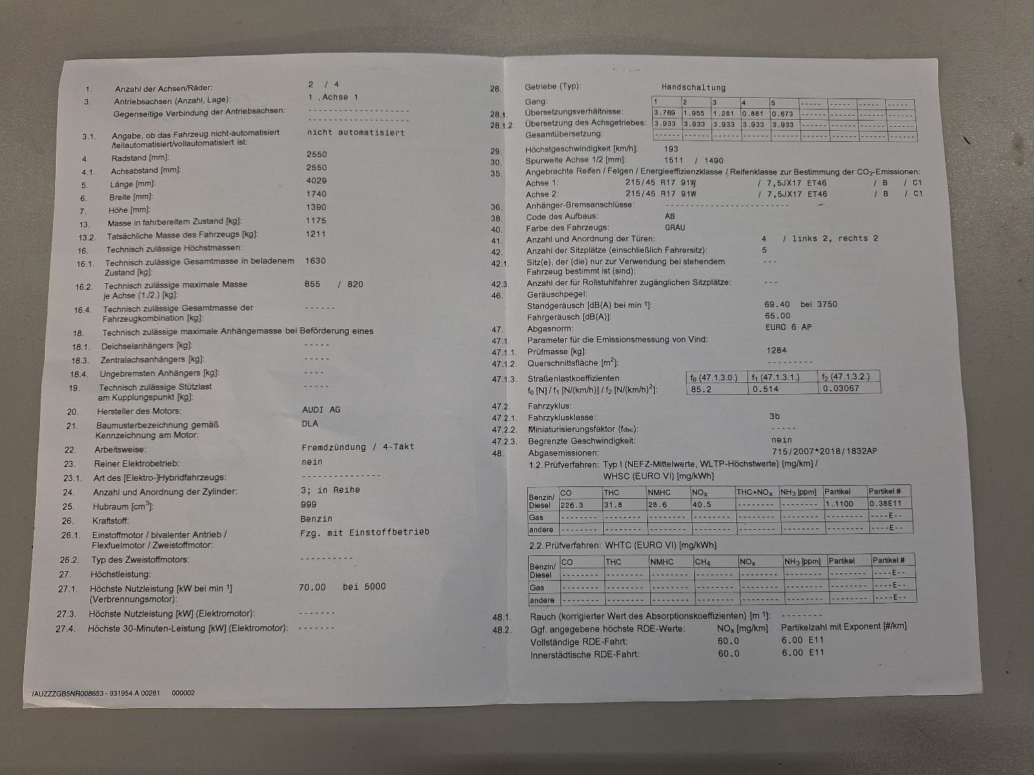 Power 95.2 hp / 70 kW -