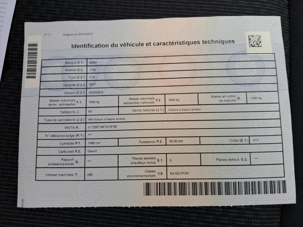 BMW 1 Series HATCH 1.5 116DA (85KW)