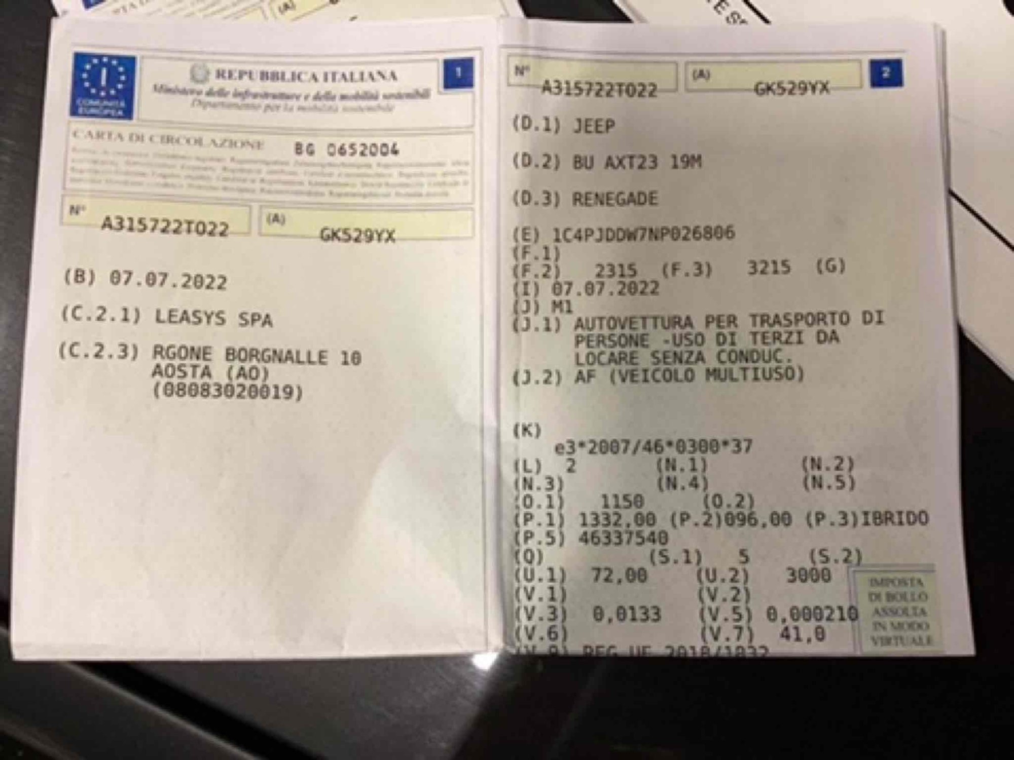 Country of registration Italy -