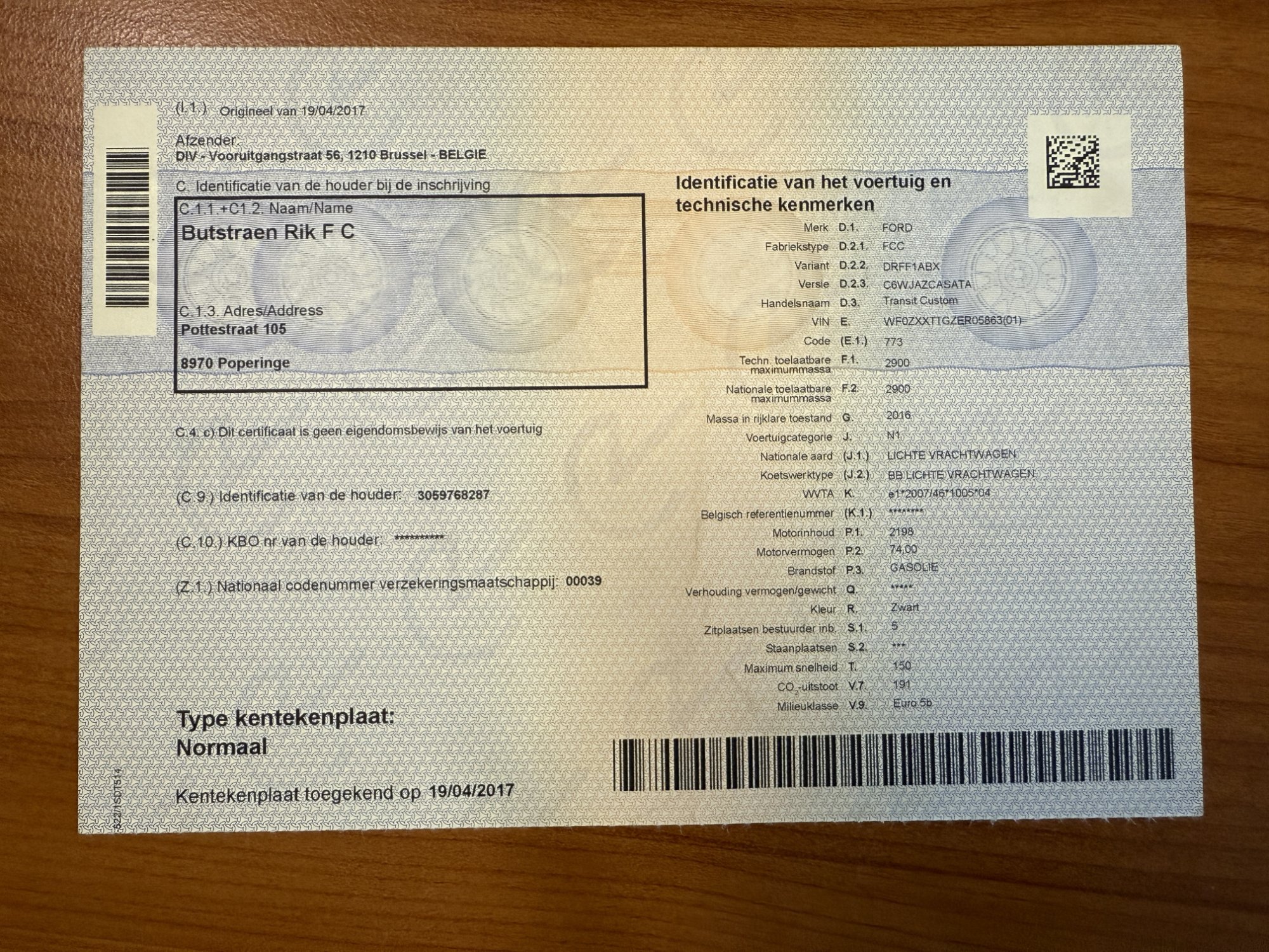 VIN numeris ***************** -