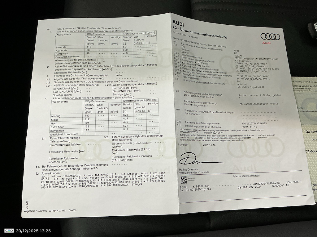 Audi A3 SPORTBACK 1.0 30 TFSI 81KW S TRONIC BUSINESS EDIT.