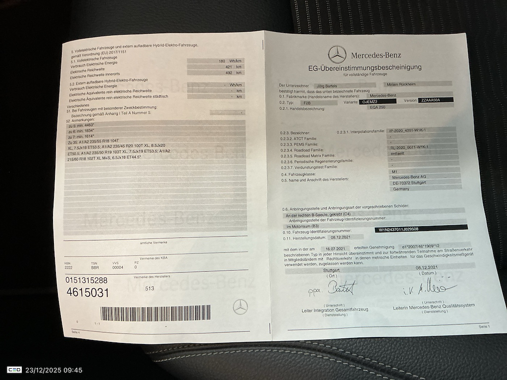 Mercedes-Benz EQA BEV 67KWH 250 BUSINESS SOL LUX