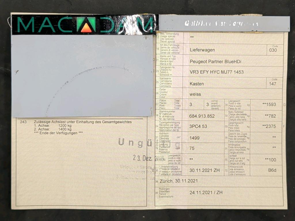 Peugeot Partner Bluehdi 100 AsphaltS&s Long 1000 Kg