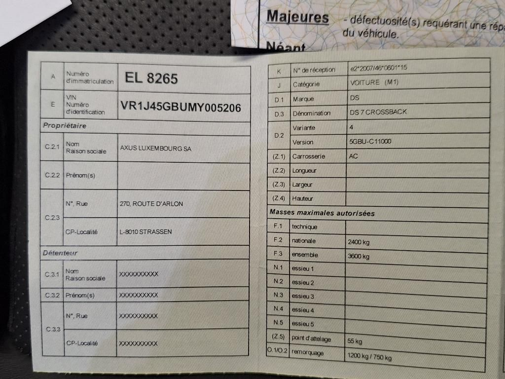DS 7 AUTOMOBILES 1.6 E-TENSE GRAND CHIC CR 200 CV Inspiration OPERA Art Basaltet; Toit panoramique; GPS