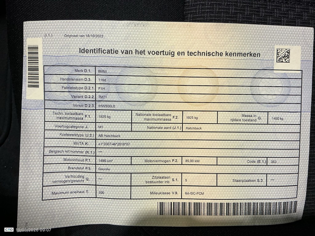 BMW 1 Series HATCH 1.5 116D (85KW)