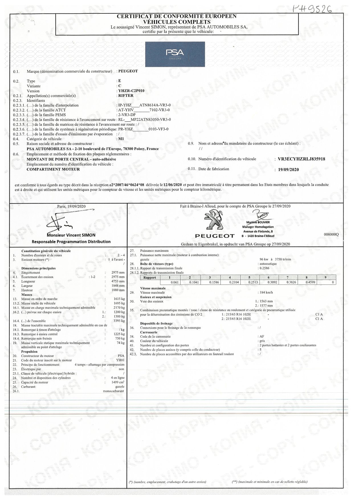 VIN numeris ***************** -