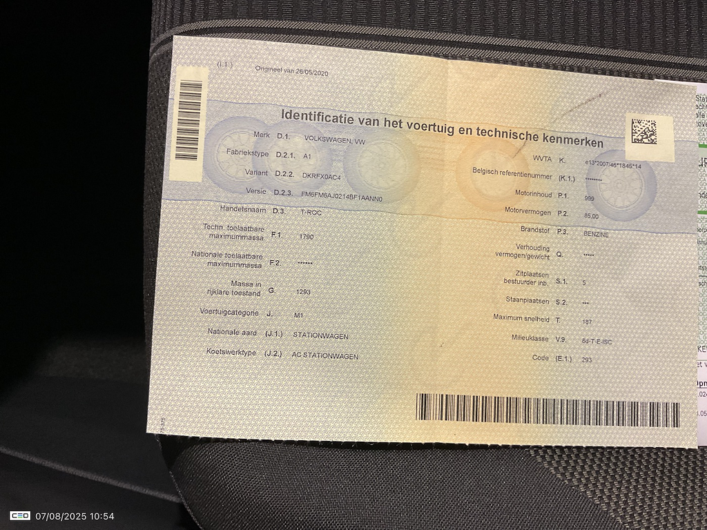Numer VIN pojazdu ***************** -