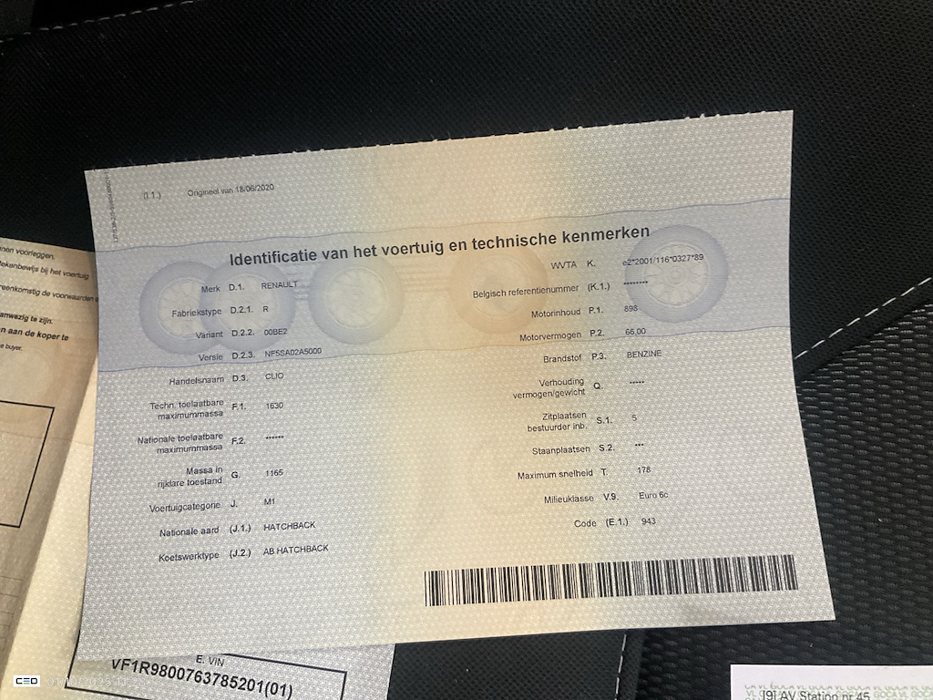 Numer VIN pojazdu ***************** -