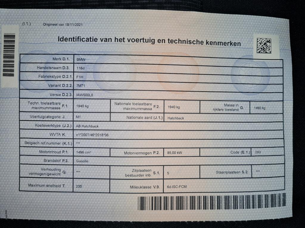 BMW 1 Series HATCH 1.5 116DA (85KW)