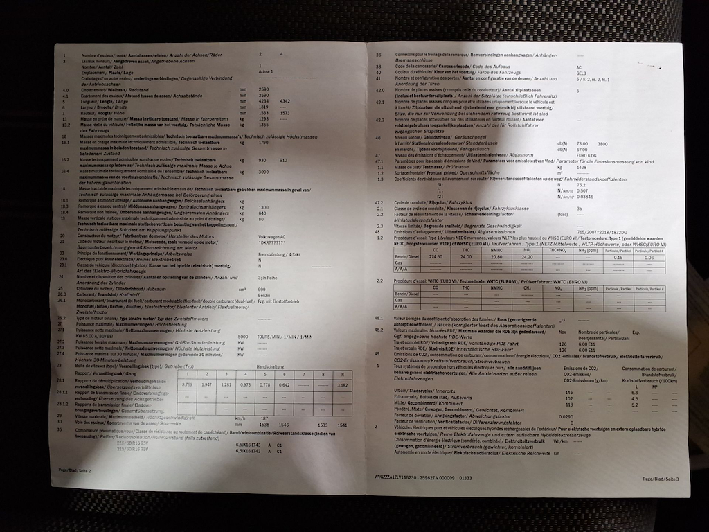 Numer VIN pojazdu ***************** -
