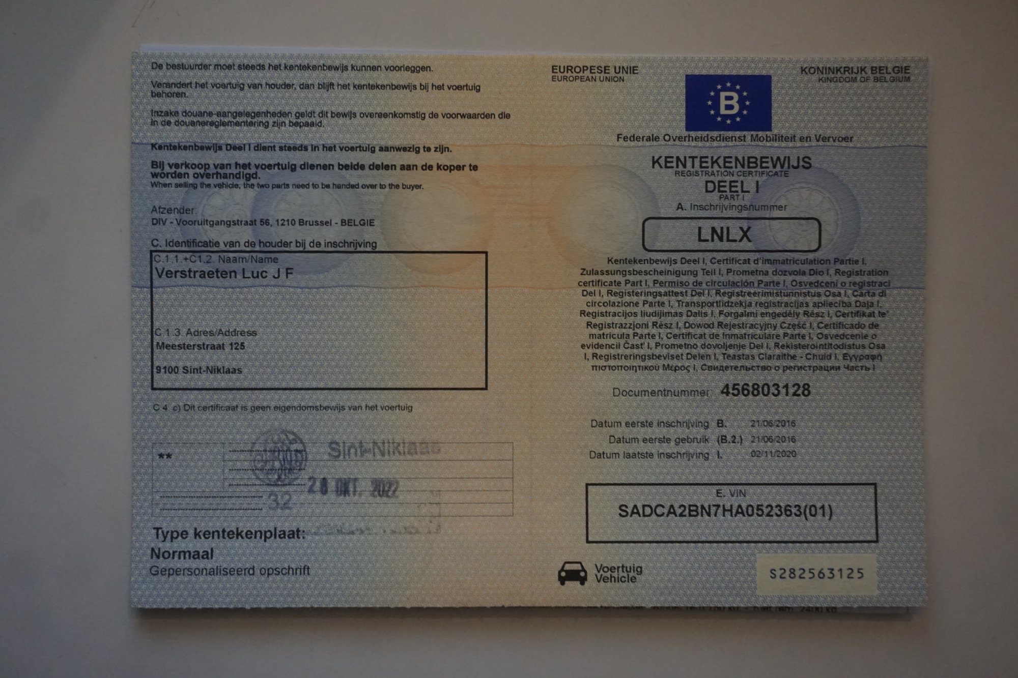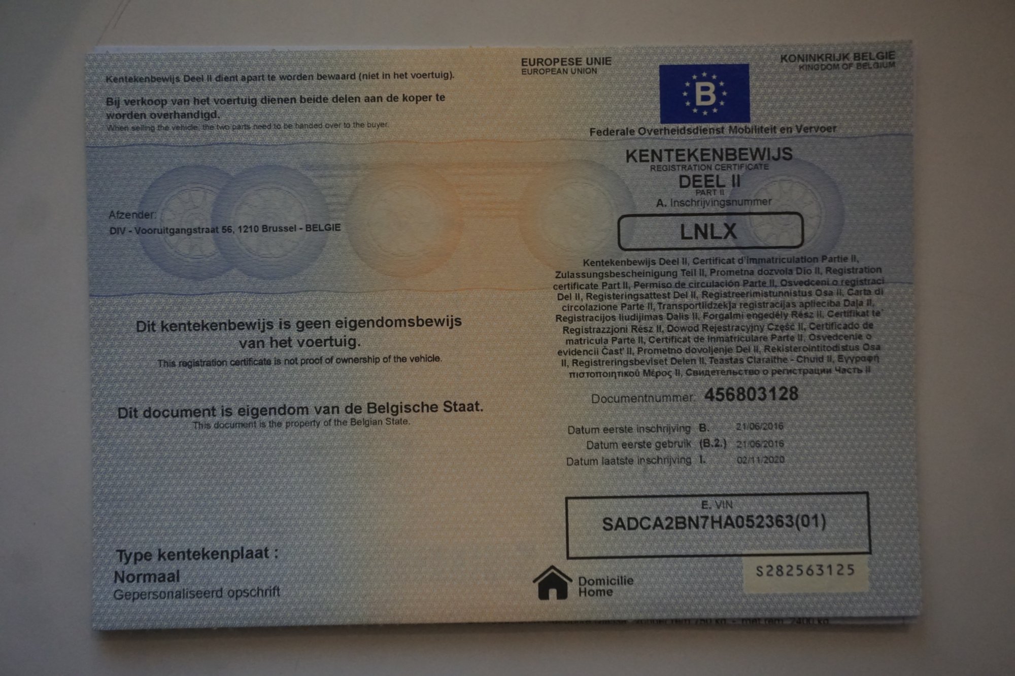 Kraj rejestracji Belgia -