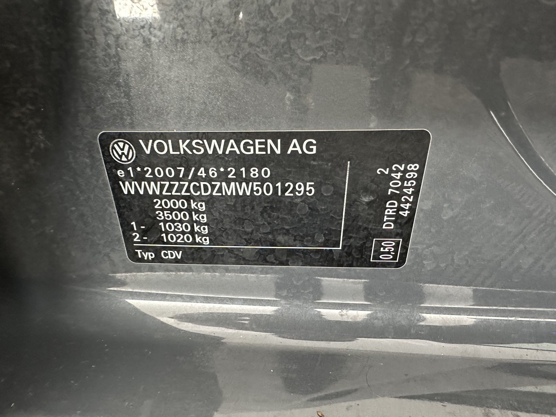 Numer VIN pojazdu ***************** -