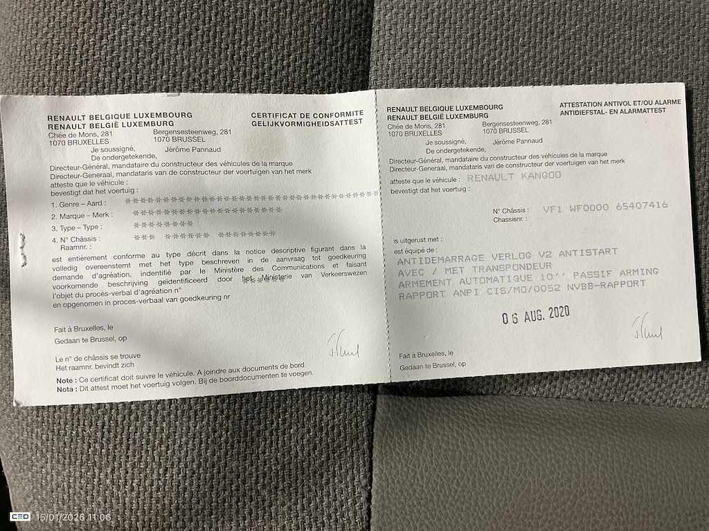 Numer VIN pojazdu ***************** -