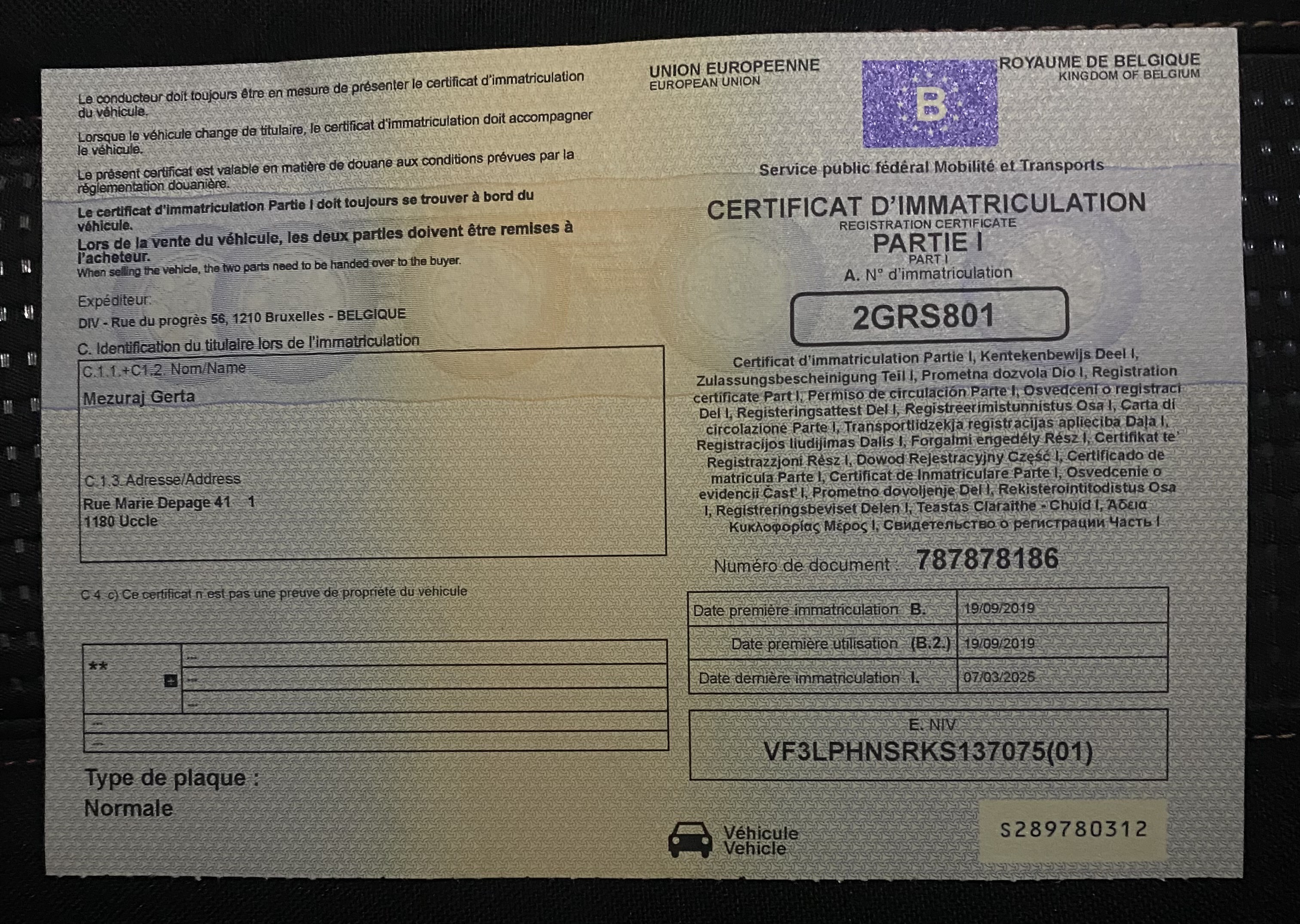 Kraj rejestracji Belgia -