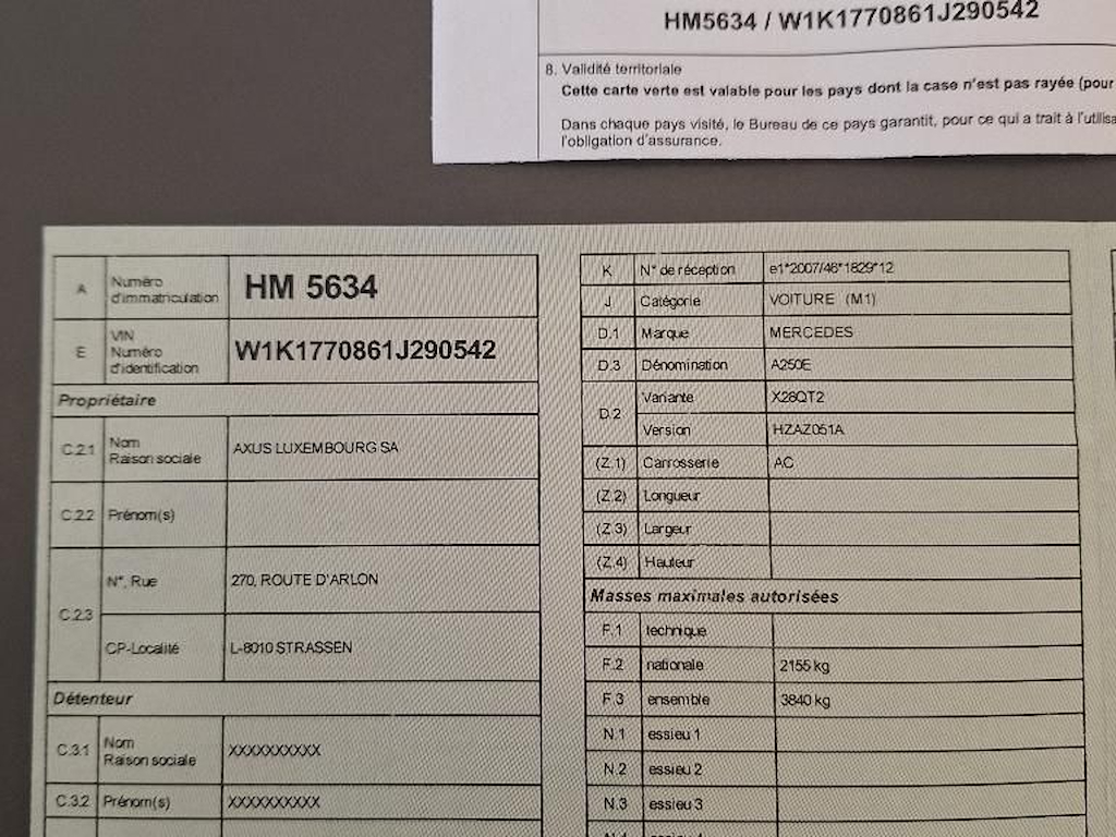 Numer VIN pojazdu ***************** -