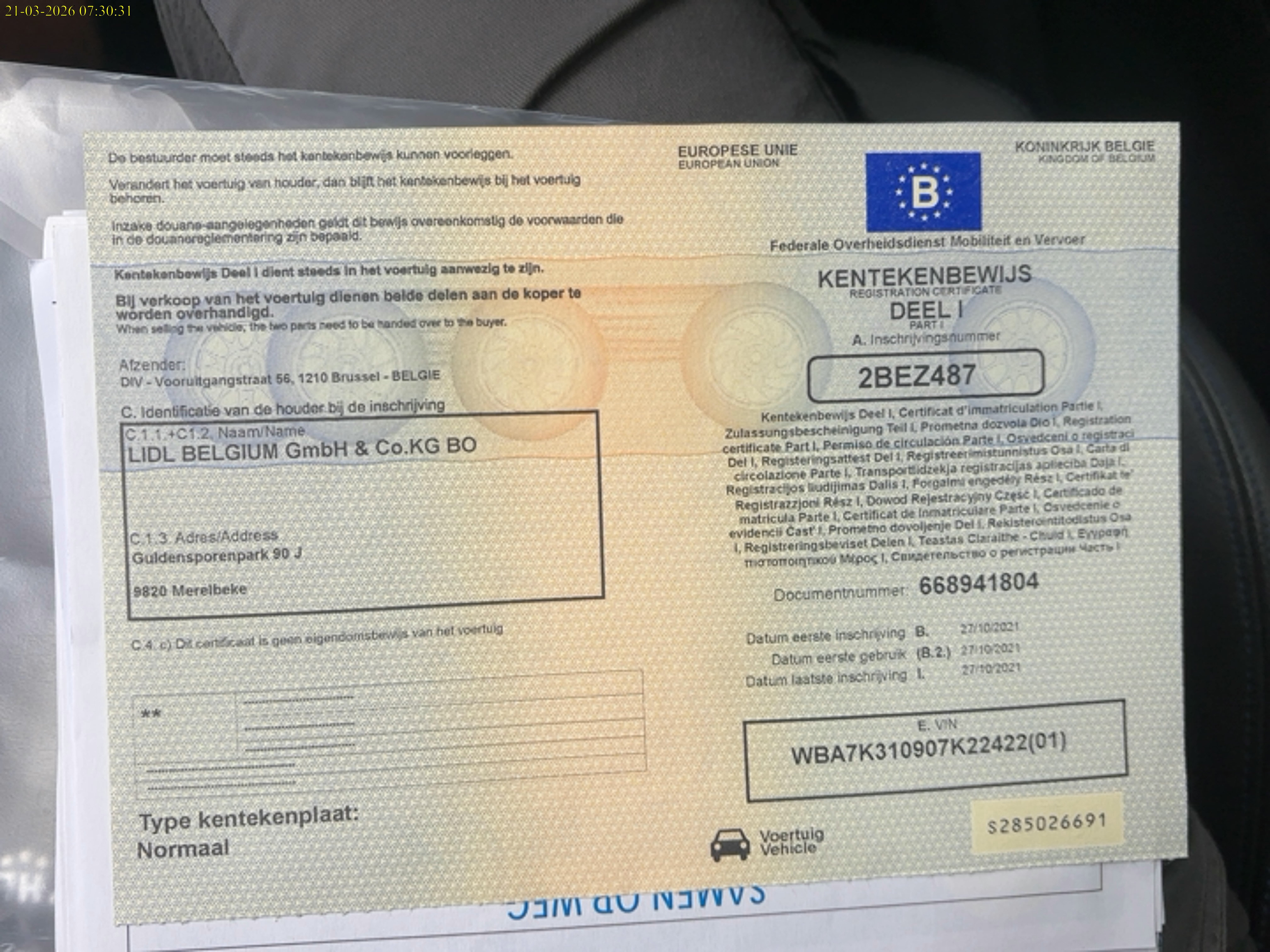 Kraj rejestracji Belgia -
