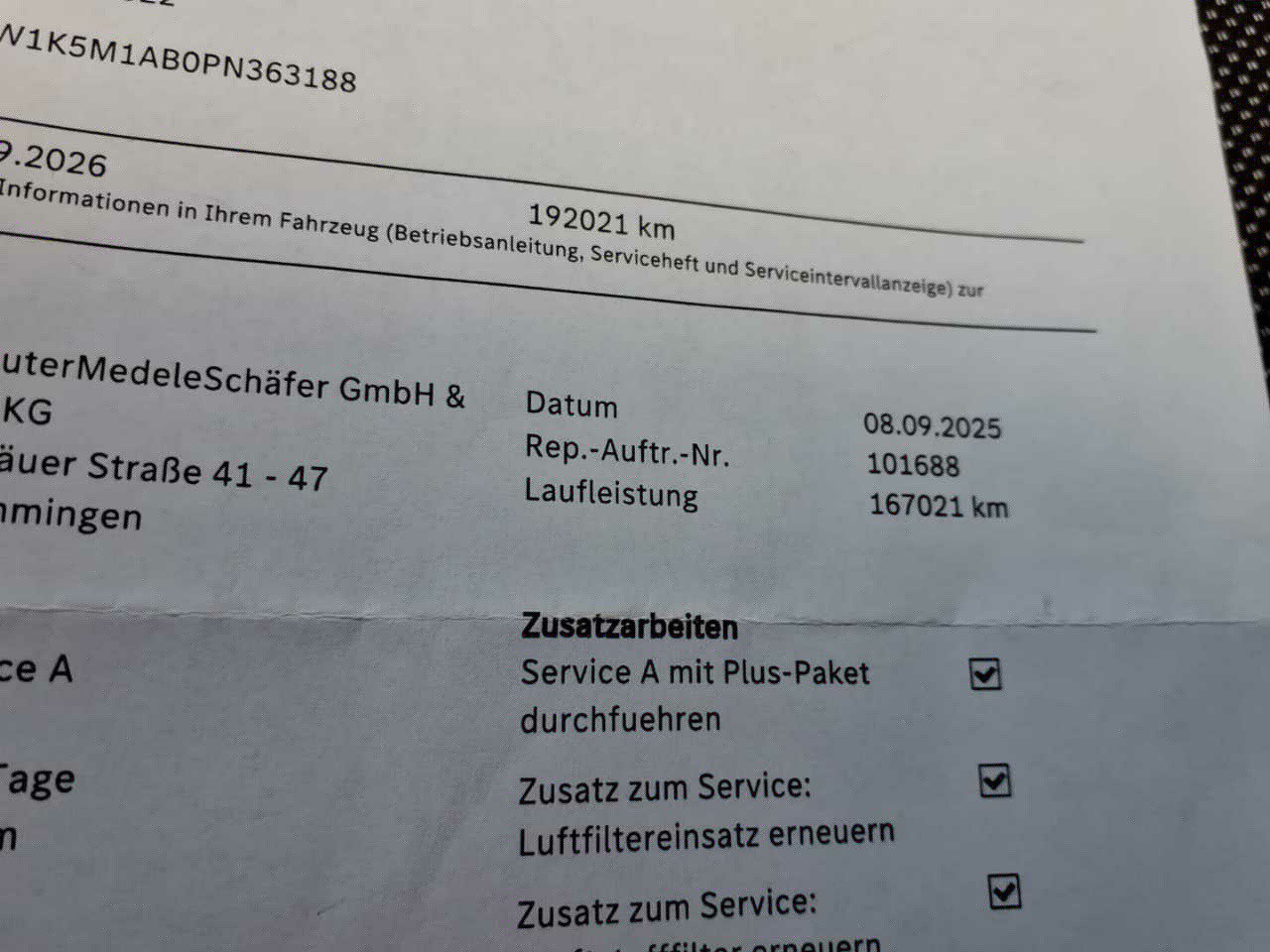 Numer VIN pojazdu ***************** -