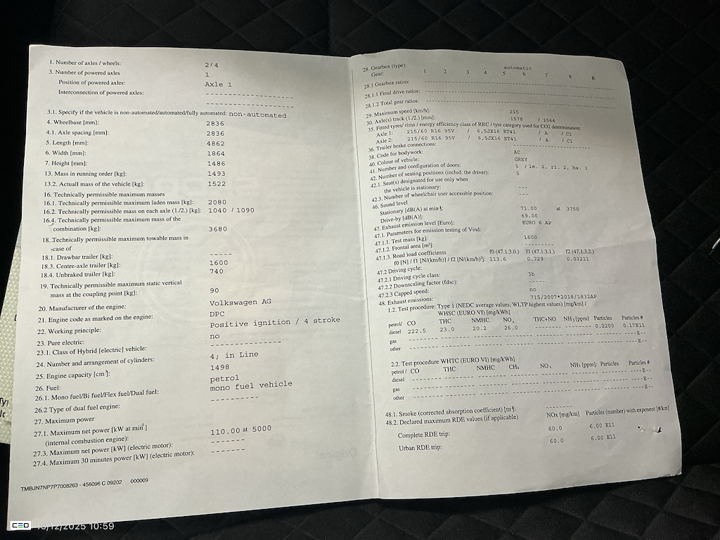 Numer VIN pojazdu ***************** -