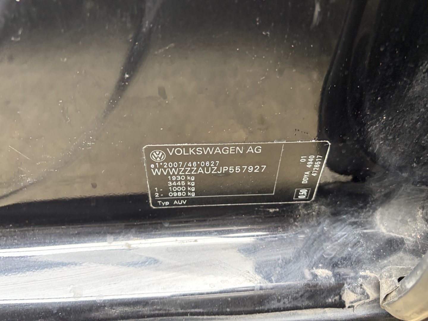 Numer VIN pojazdu ***************** -