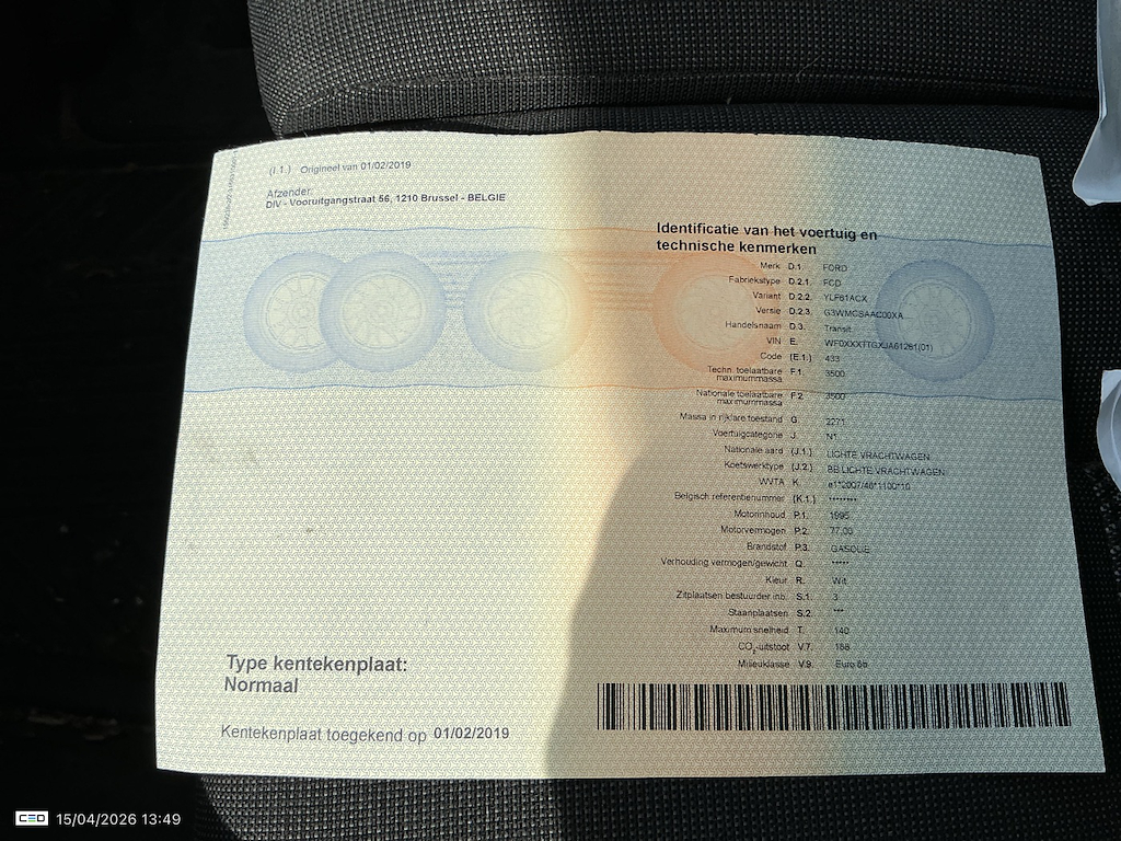 Numer VIN pojazdu ***************** -