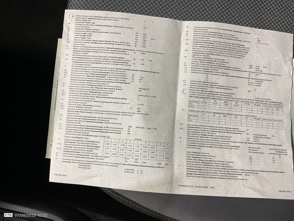 VIN номер авто ***************** -