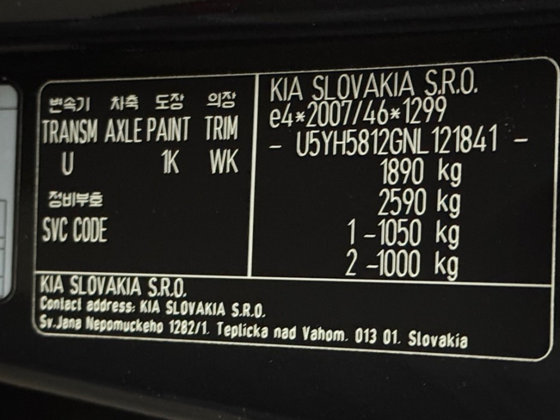 VIN номер авто ***************** -