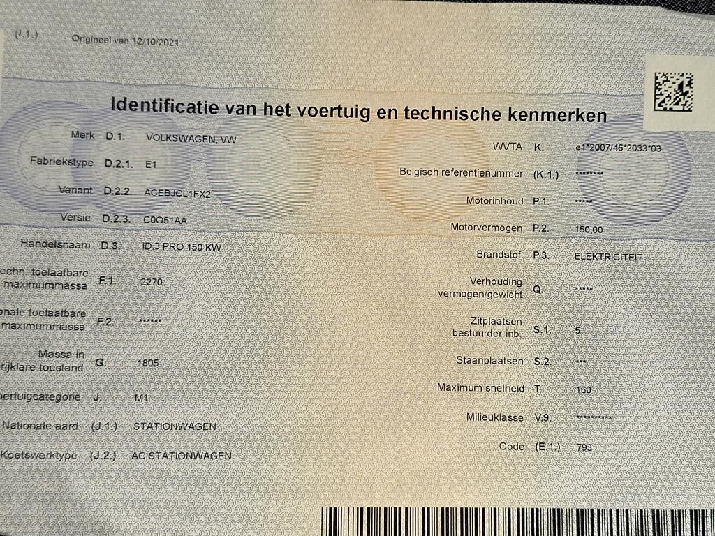 Volkswagen ID.3 BEV 62KWH 150KW PRO PERFORMANCE BUSINESS