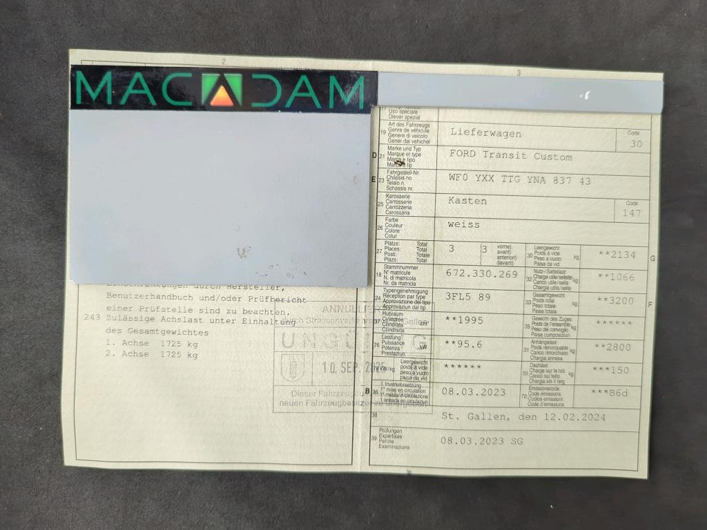 Ford Transit Custom 2.0 TDCI 130PS 320 L2H1 TREND