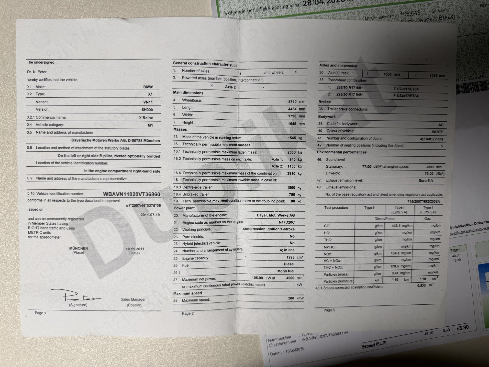 VIN номер авто ***************** -