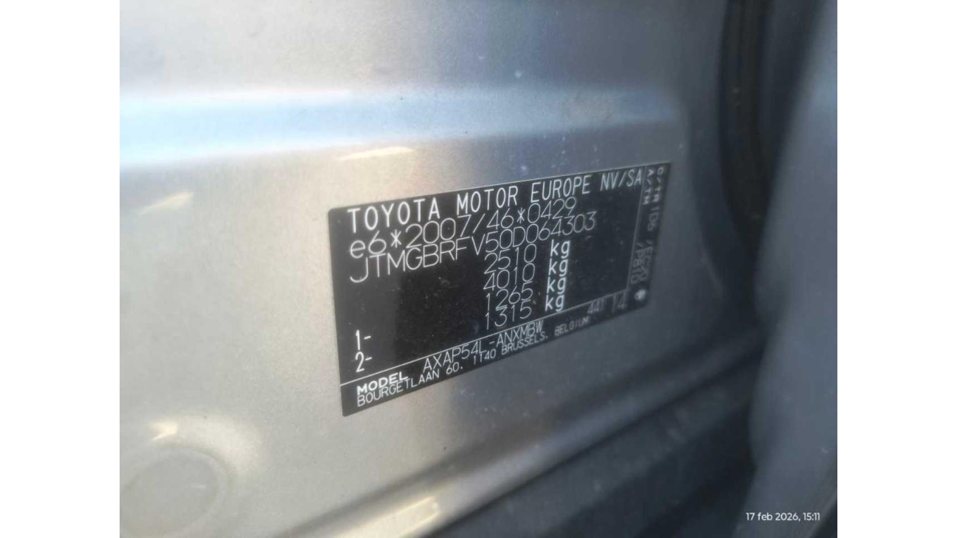 VIN номер авто ***************** -