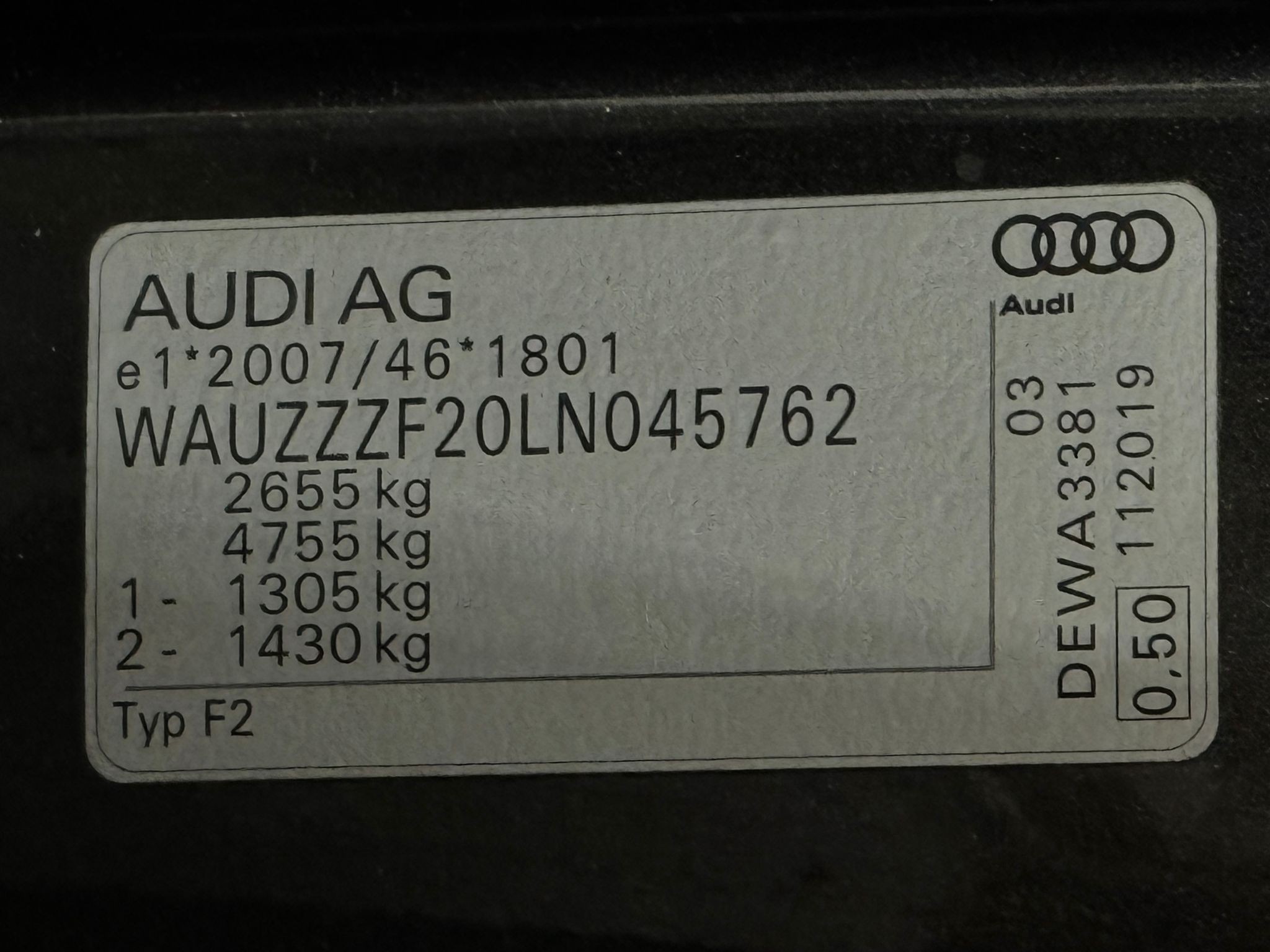 VIN номер авто ***************** -
